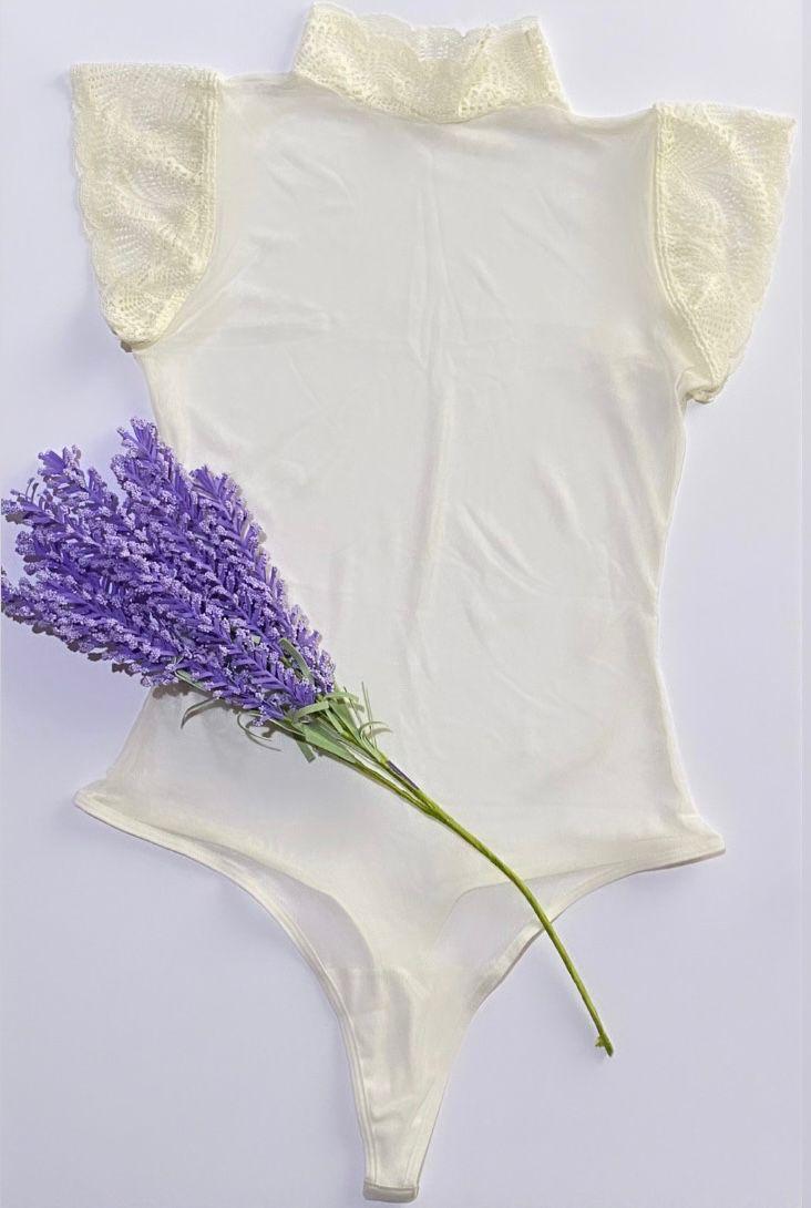 Body elaborado en mallatex, con detalle de encaje en cuello y mangas. Su refuerzo está hecho 100% en algodón.